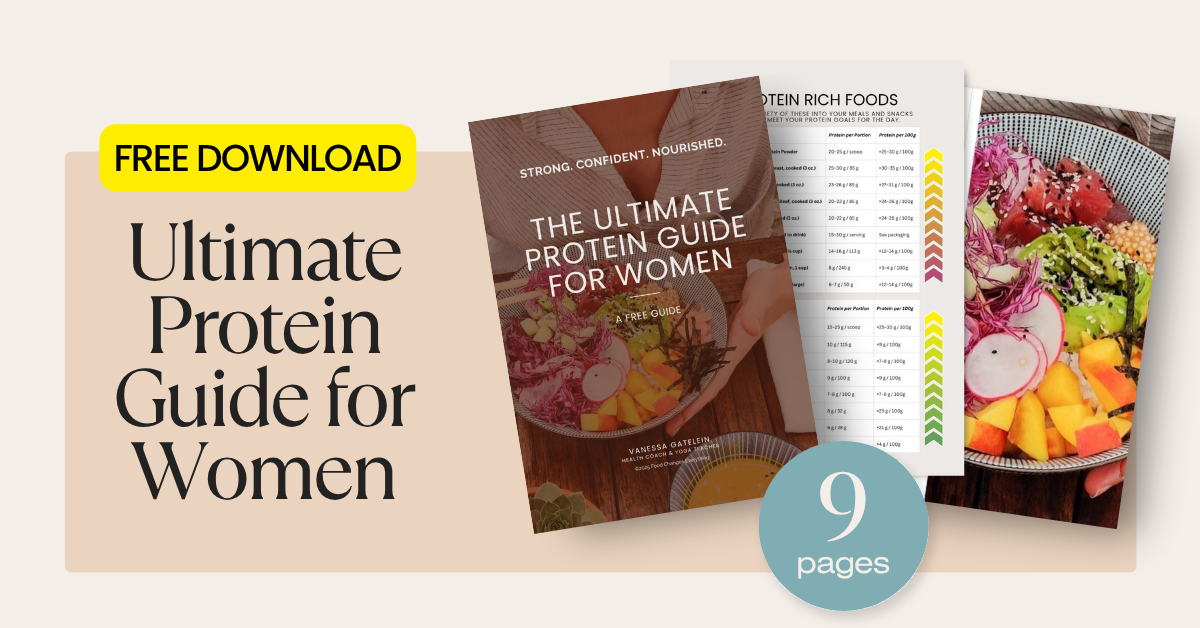 Download my free protein guide for women (after signing up for my newsletter.) You’ll get a chart with protein grams and two days of meal ideas.